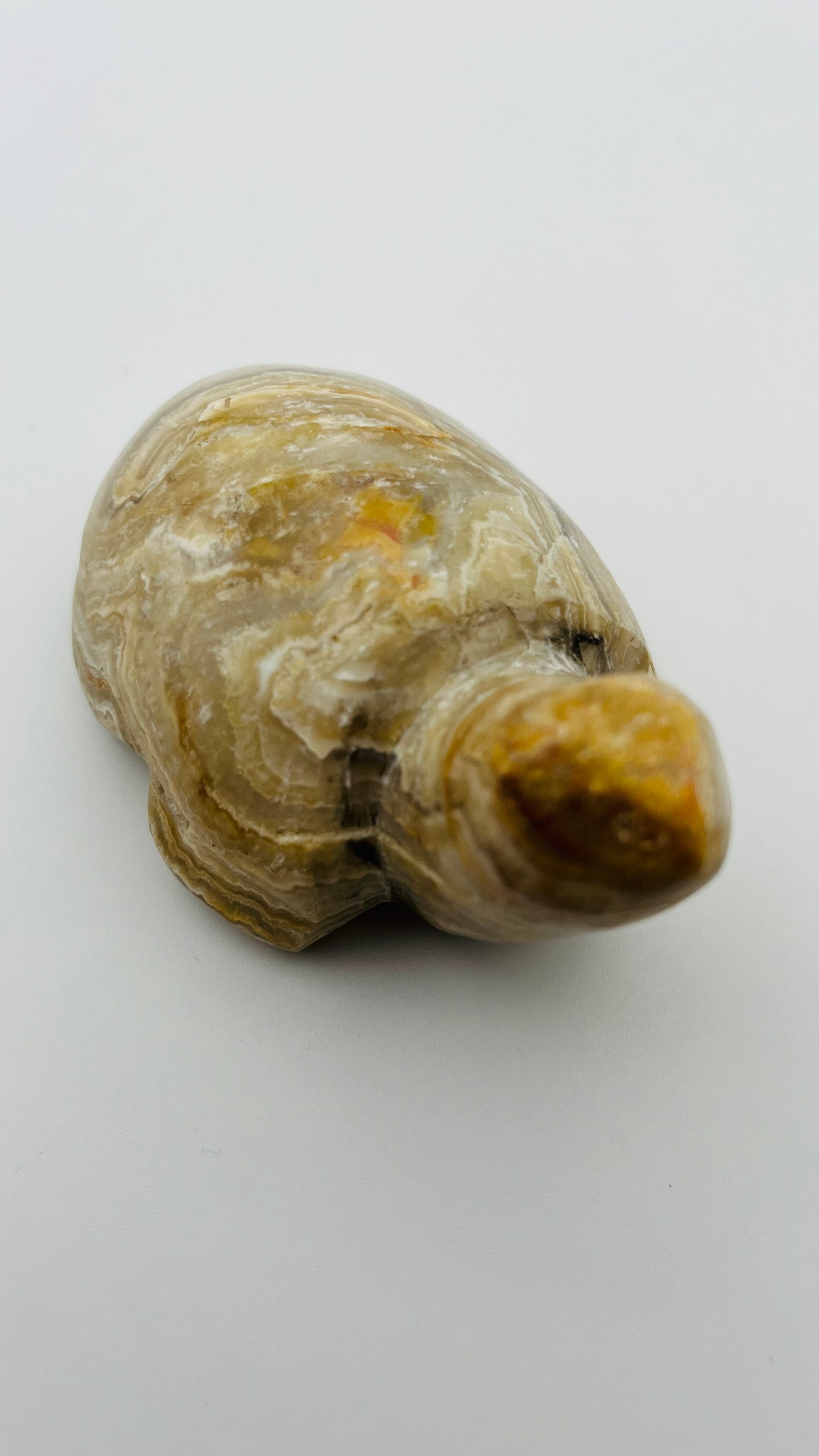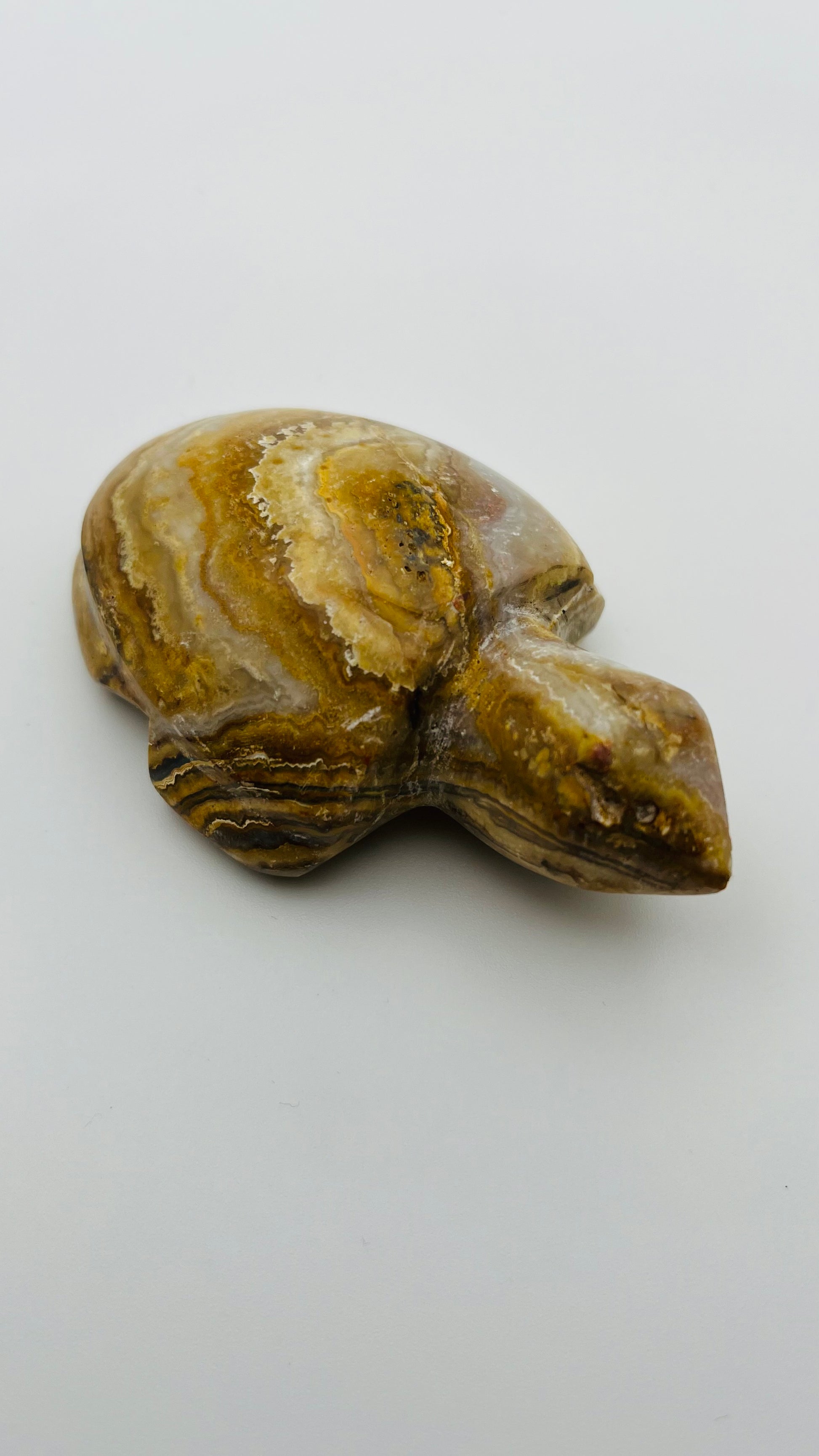 Experience tranquility and protection with our Agate Carved Turtle. Its intricate banding symbolizes the ocean and connects you to nature and your inner self.
