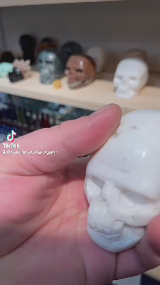 Chalcedony Druzy (Snow Druzy) Skull Carving