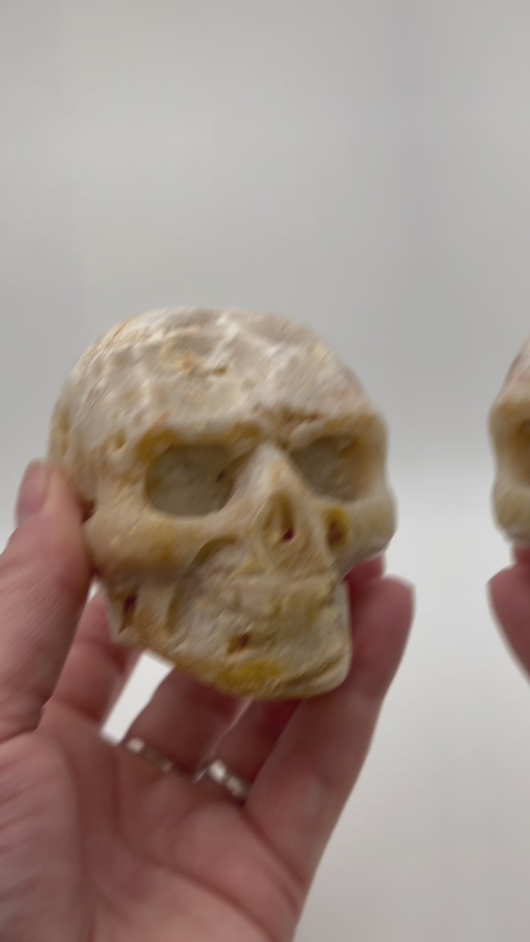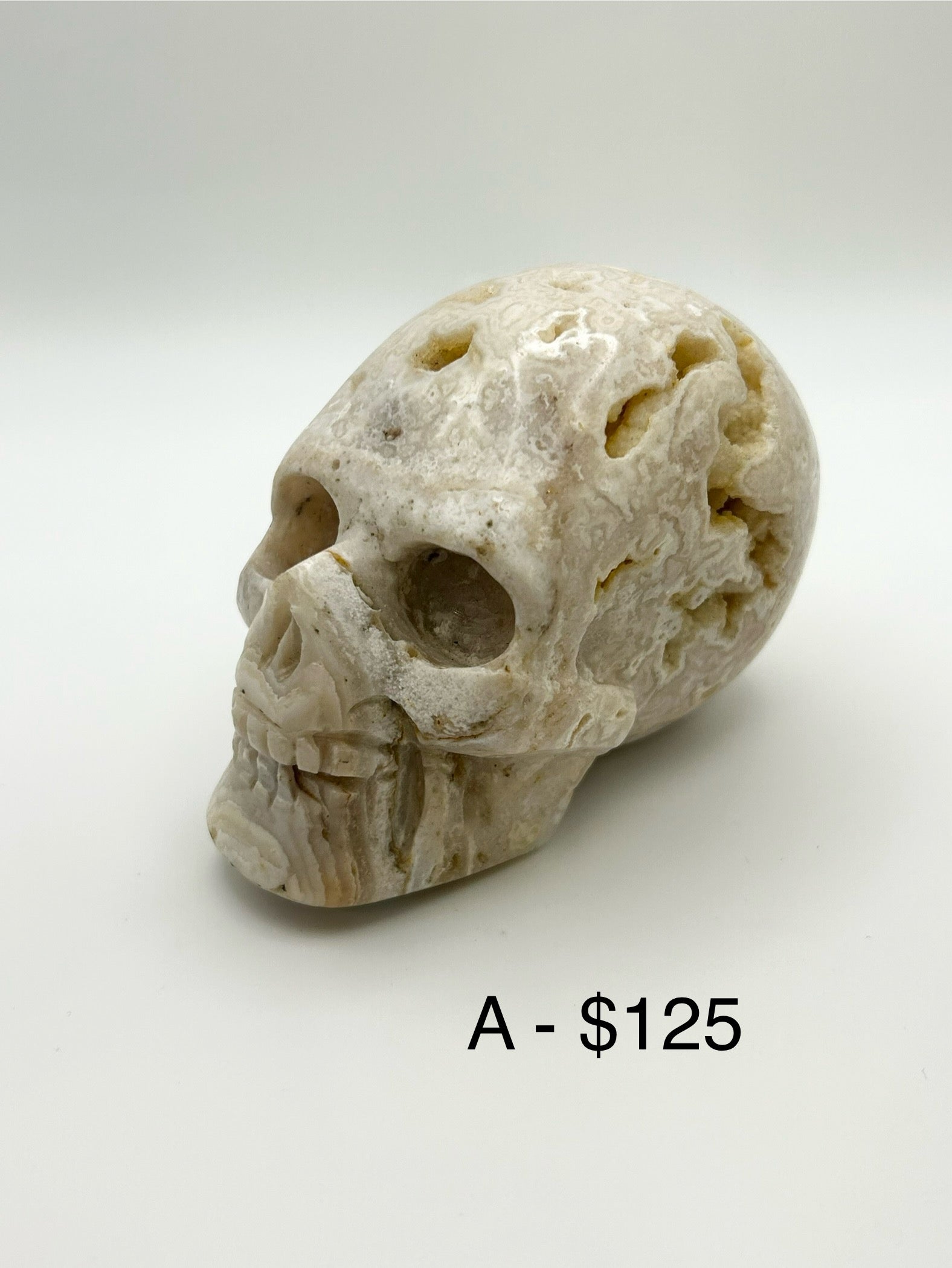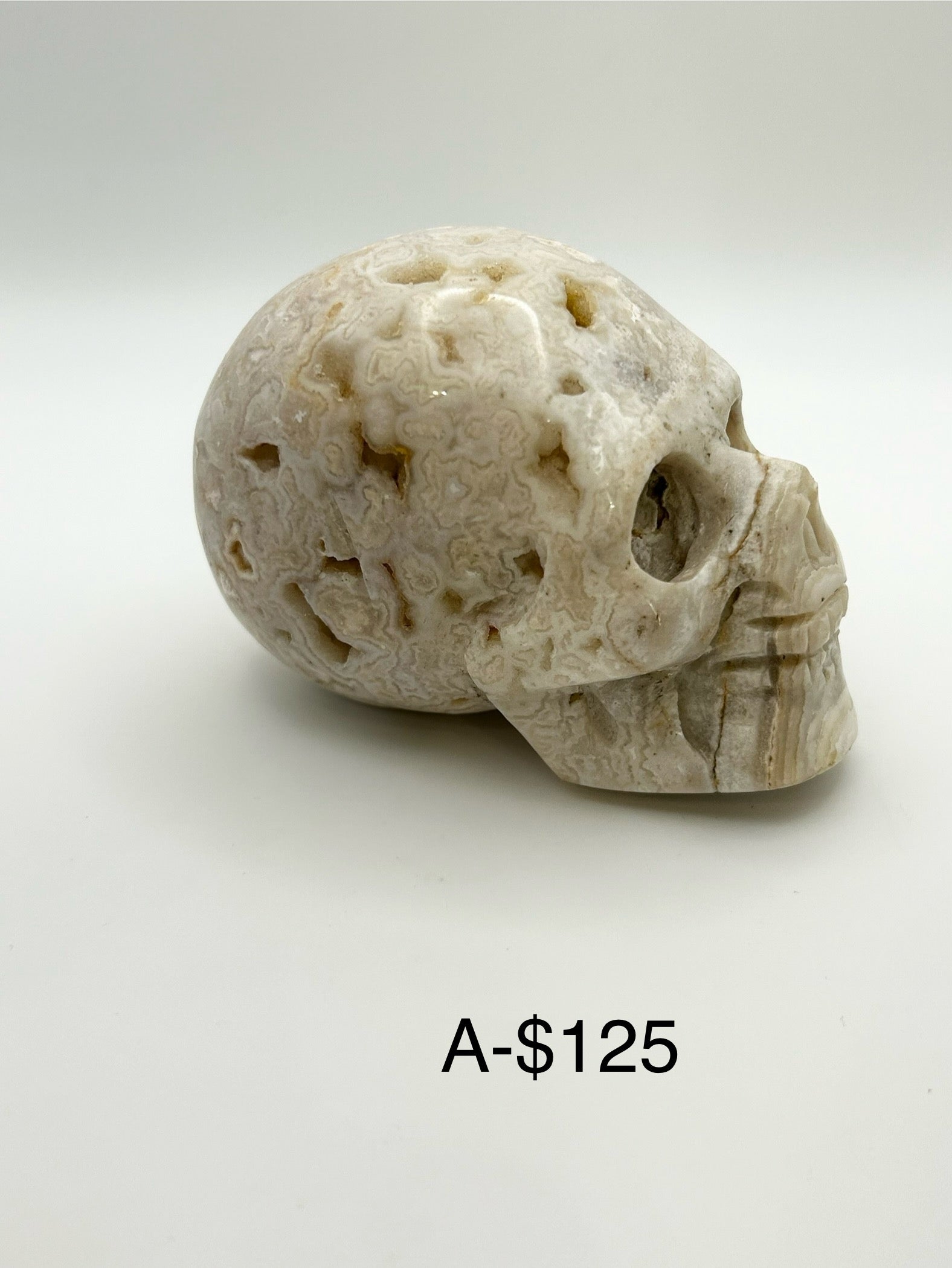 Presenting our extraordinary Crazy Lace Druzy Skull Head: A fusion of elegance and mystique, this mesmerizing carving embodies the essence of the earth's splendor. Crafted from exquisite Crazy Lace Druzy, each intricate detail showcases the stone's intricate patterns and captivating druzy formations, evoking a sense of wonder and enchantment. Admire the harmonious blend of vibrant colors and delicate crystalline textures, as this unique piece exudes a timeless allure that transcends the ordinary. Embrace the intrigue of this remarkable carving, where every angle reveals a new facet of its natural beauty.