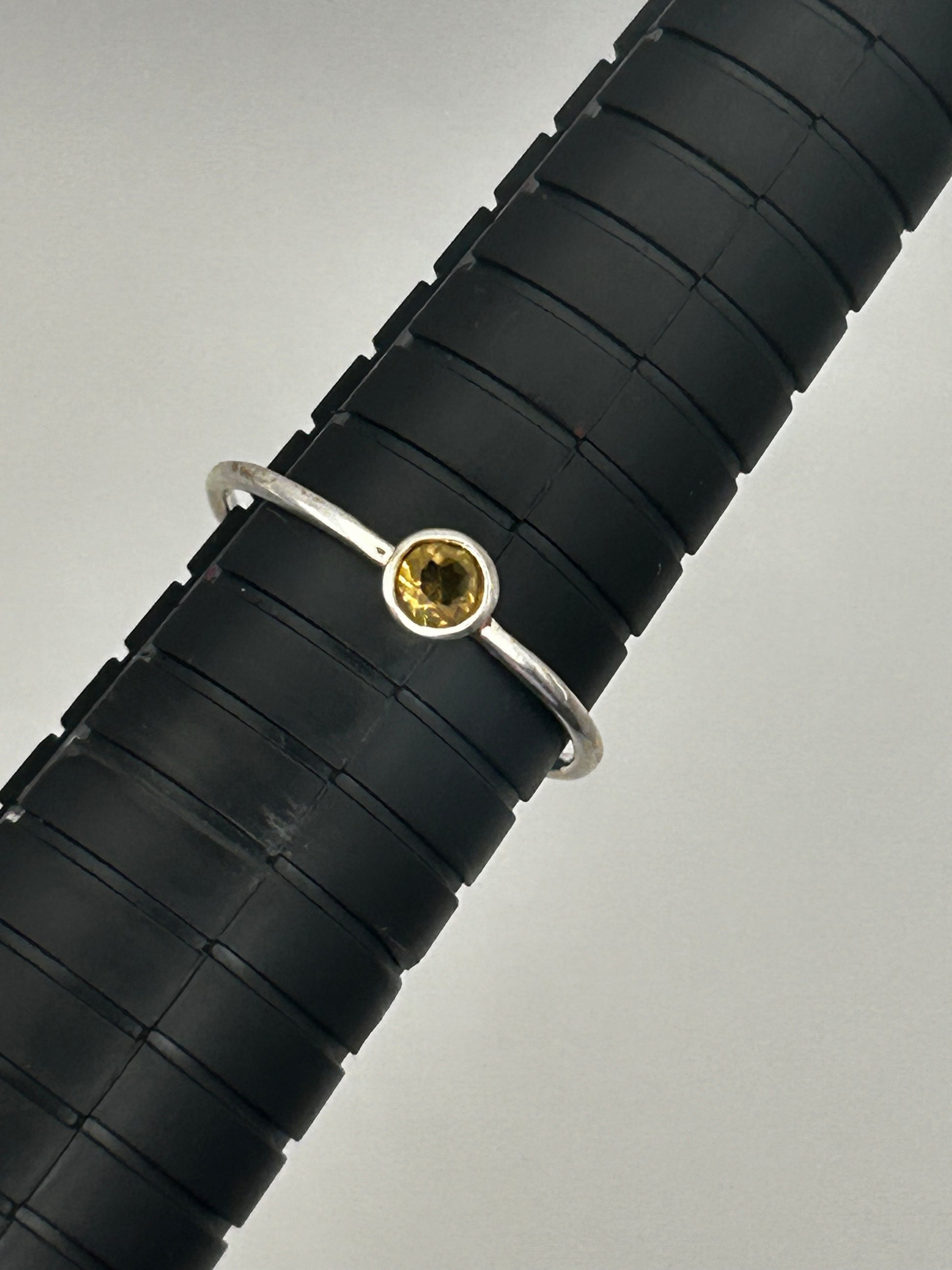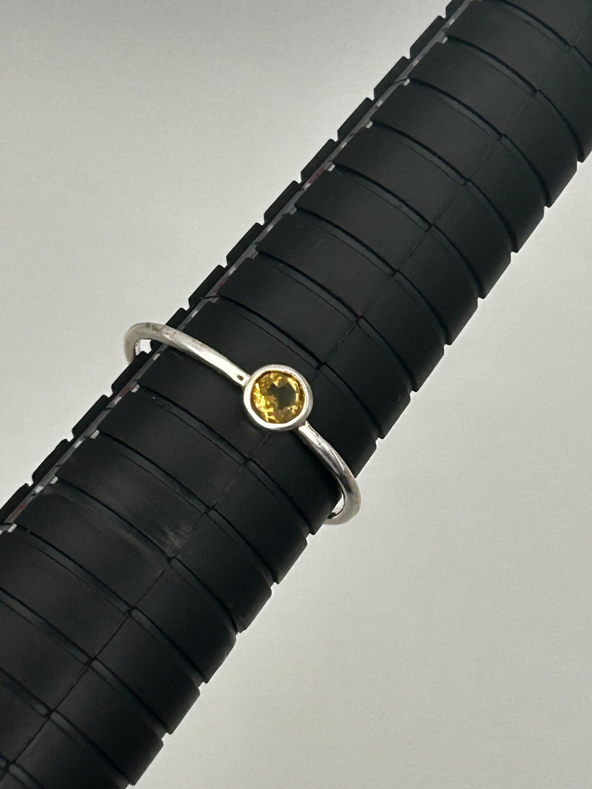 Introducing our radiant citrine ring – a radiant symbol of warmth and vitality. Crafted with meticulous attention to detail, this petite ring features a dazzling citrine gemstone, known for its vibrant yellow glow. Delicately set in a sterling silver band, it exudes a subtle yet captivating charm. Perfect for adding a touch of sunshine to any outfit, it's a timeless accessory that effortlessly brightens your day. Embrace the uplifting energy of citrine with this exquisite ring.