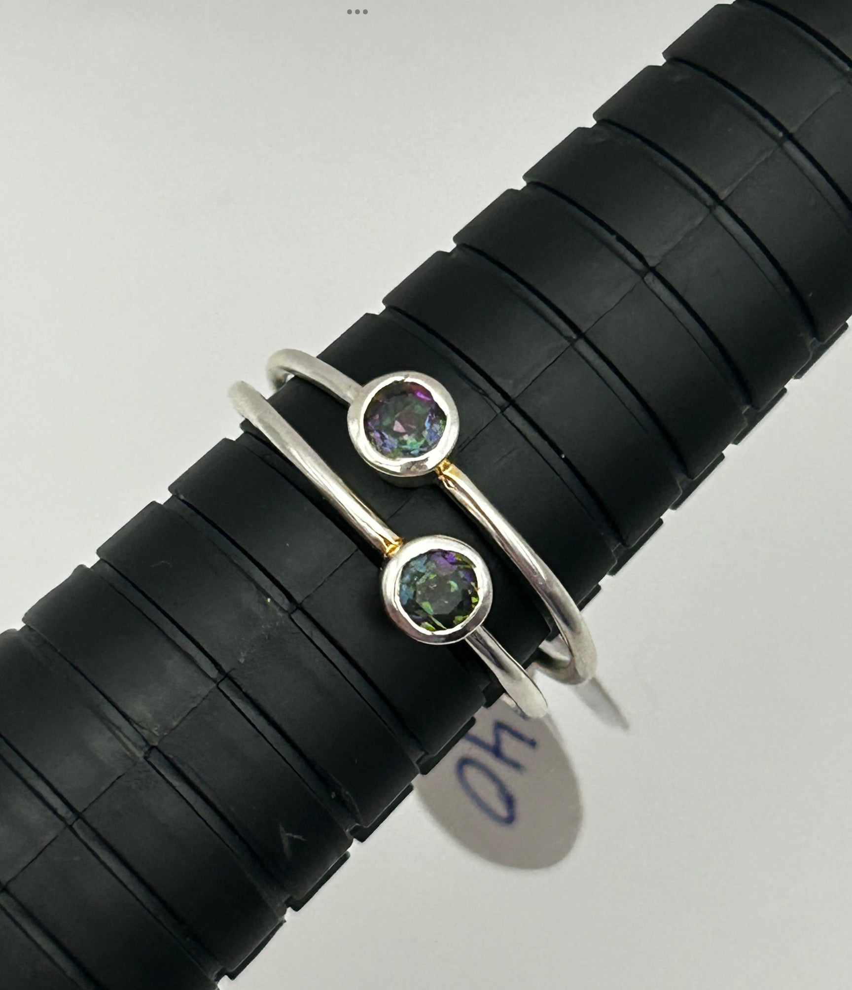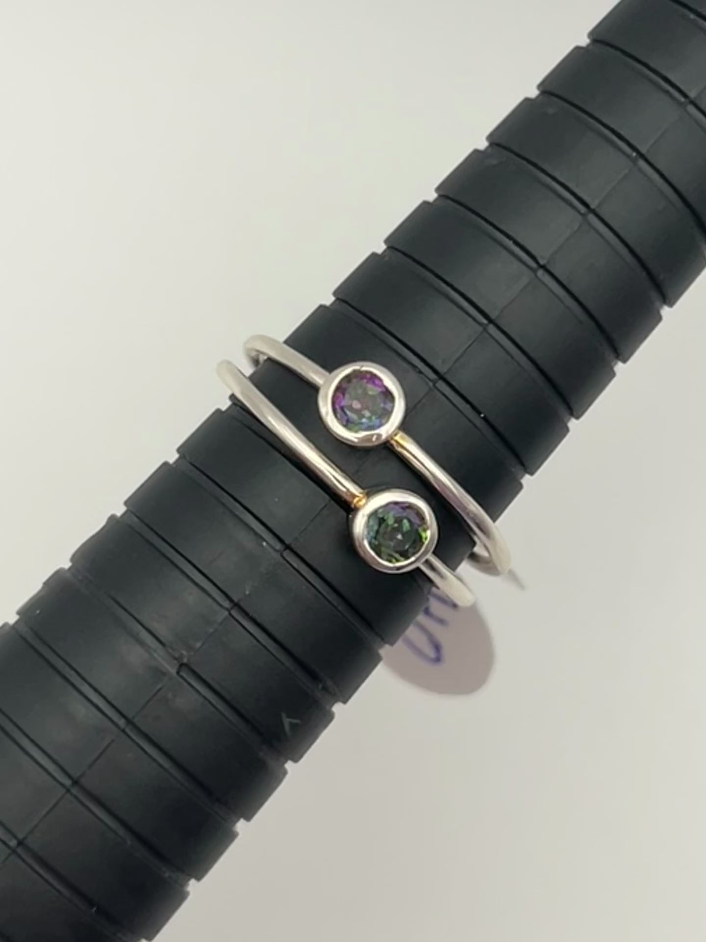 Enchanting mystic topaz ring. Captivating fusion of colors. Crafted with precision. Features mesmerizing gemstone and delicate sterling silver design. Add a touch of magic to your ensemble. Contact us for personalized assistance with sizing.