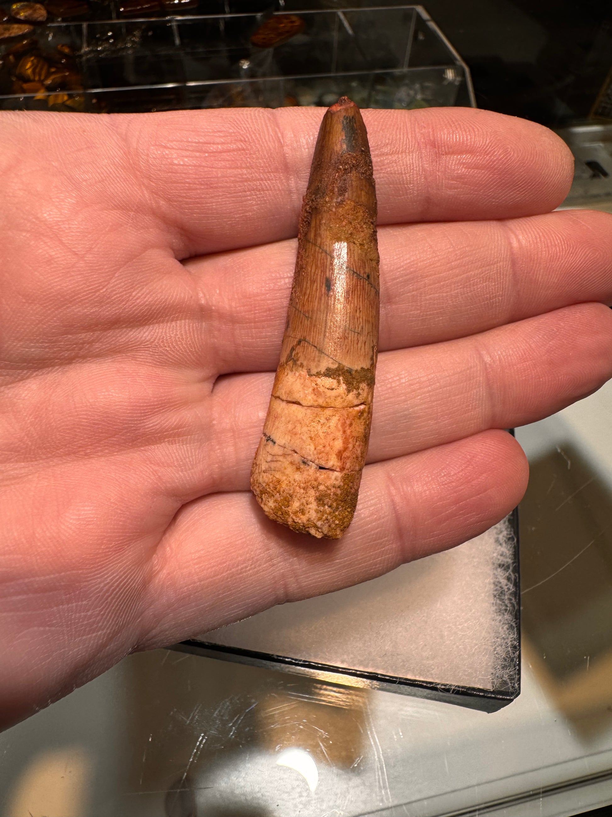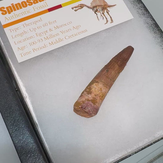 Own a piece of one of the most extraordinary predators to ever walk the Earth. This authentic Spinosaurus tooth comes from the Middle Cretaceous period, dating back an incredible 100–93 million years.