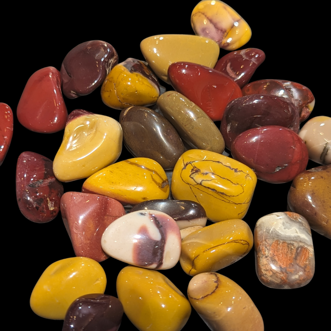 Metaphysical: Mookaite Jasper is an excellent stone for whenever you need some grounding and action-oriented energy. Assisting with the Root and Solar Plexus Chakras, it helps with creating material success, and can also help one with perseverance and taking deliberate action for making major strides in life. It is also said to increase self-confidence, self-worth, decisiveness, and the power to use one’s full potential. So… got money blocks? Use Mookaite Jasper!