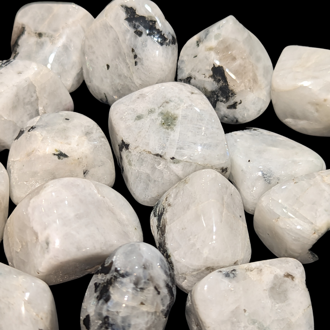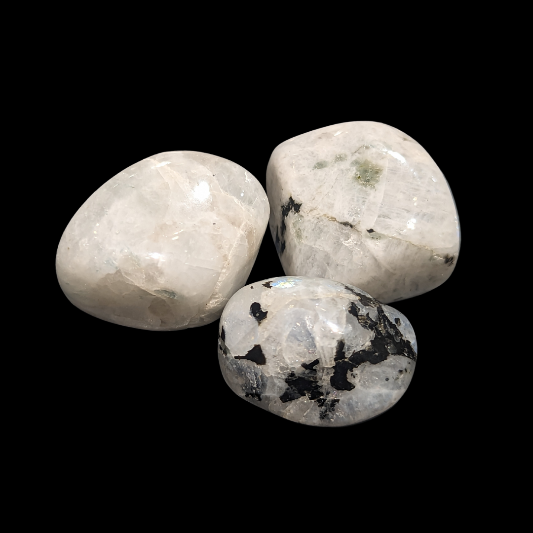 Physical: Although it gets its name from how close it looks to Moonstone, Rainbow Moonstone is actually White Labradorite, which exhibits flashy colours and rainbows all along its structure, similarly to actual Moonstone. Mainly, it is mined in India and Madagascar, but it can also be found in Sri Lanka, Australia, Mexico and Poland. With a 6-6.5 rating on the Mohs Hardness Scale, it is perfect for jewellery wear in the forms of cabochons and beads.