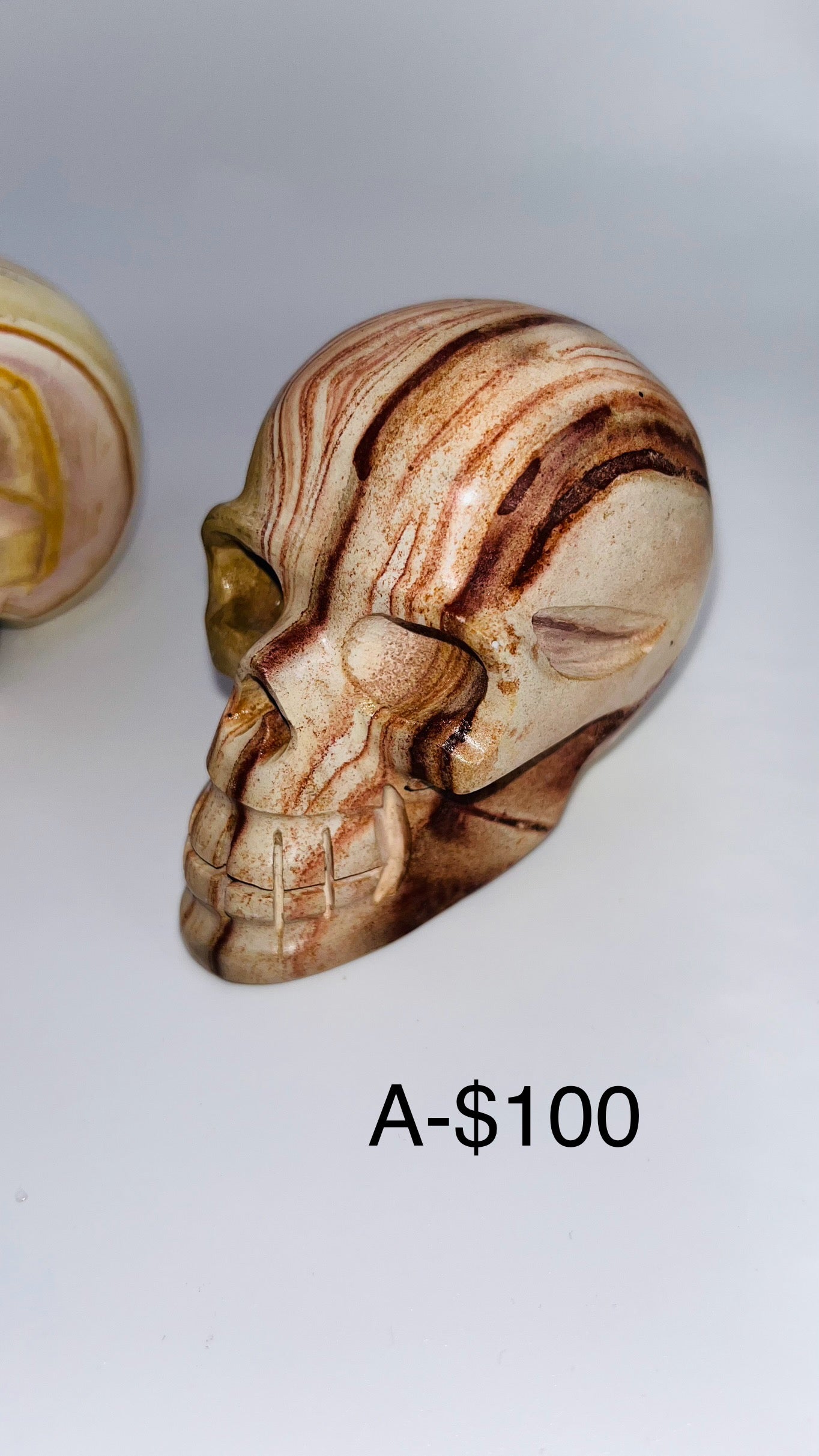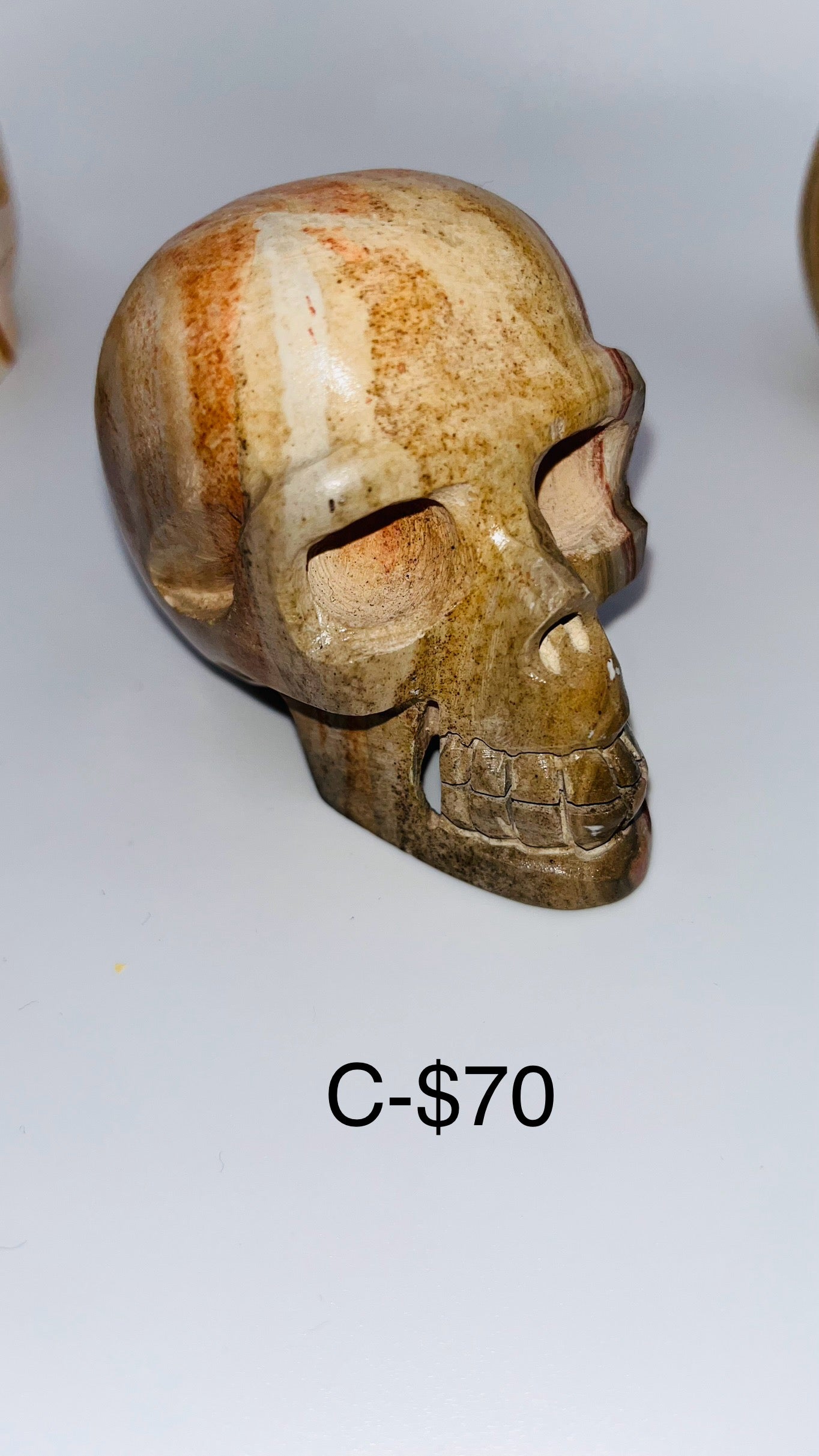 Introducing our stunning Rainbow Jasper Skull Head Carving: A mesmerizing blend of vibrant hues, this piece captures the essence of nature's kaleidoscope. Crafted from premium rainbow jasper, each intricately carved detail showcases the stone's unique patterns and colors, making it a striking addition to any collection. Embrace the mystical allure of this exquisite carving, where every glance reveals new depths of beauty and wonder.