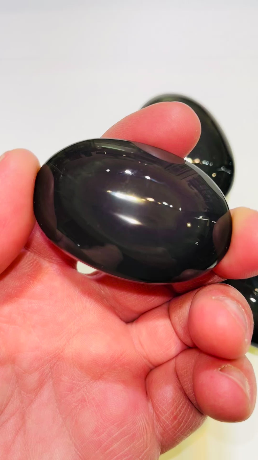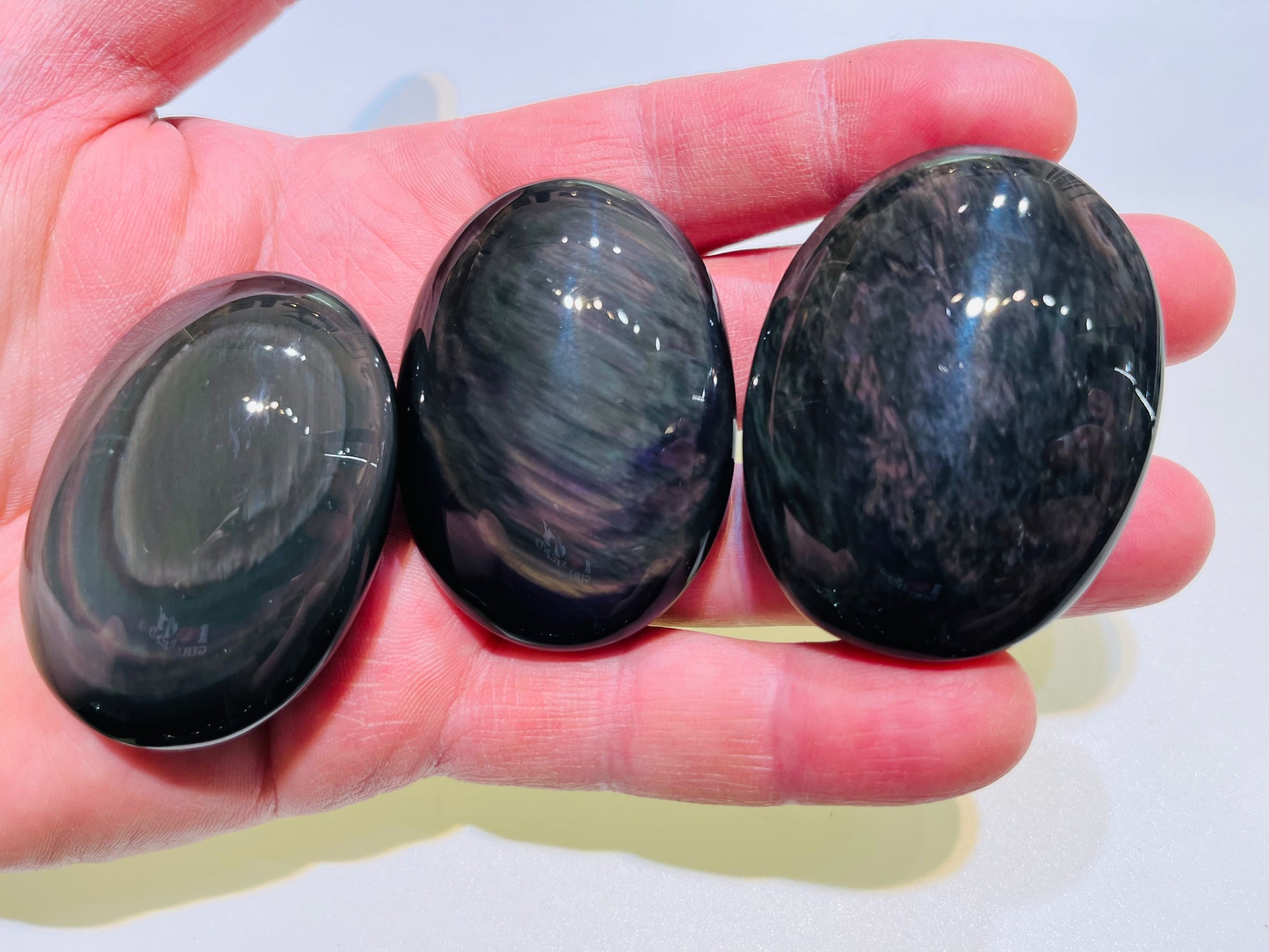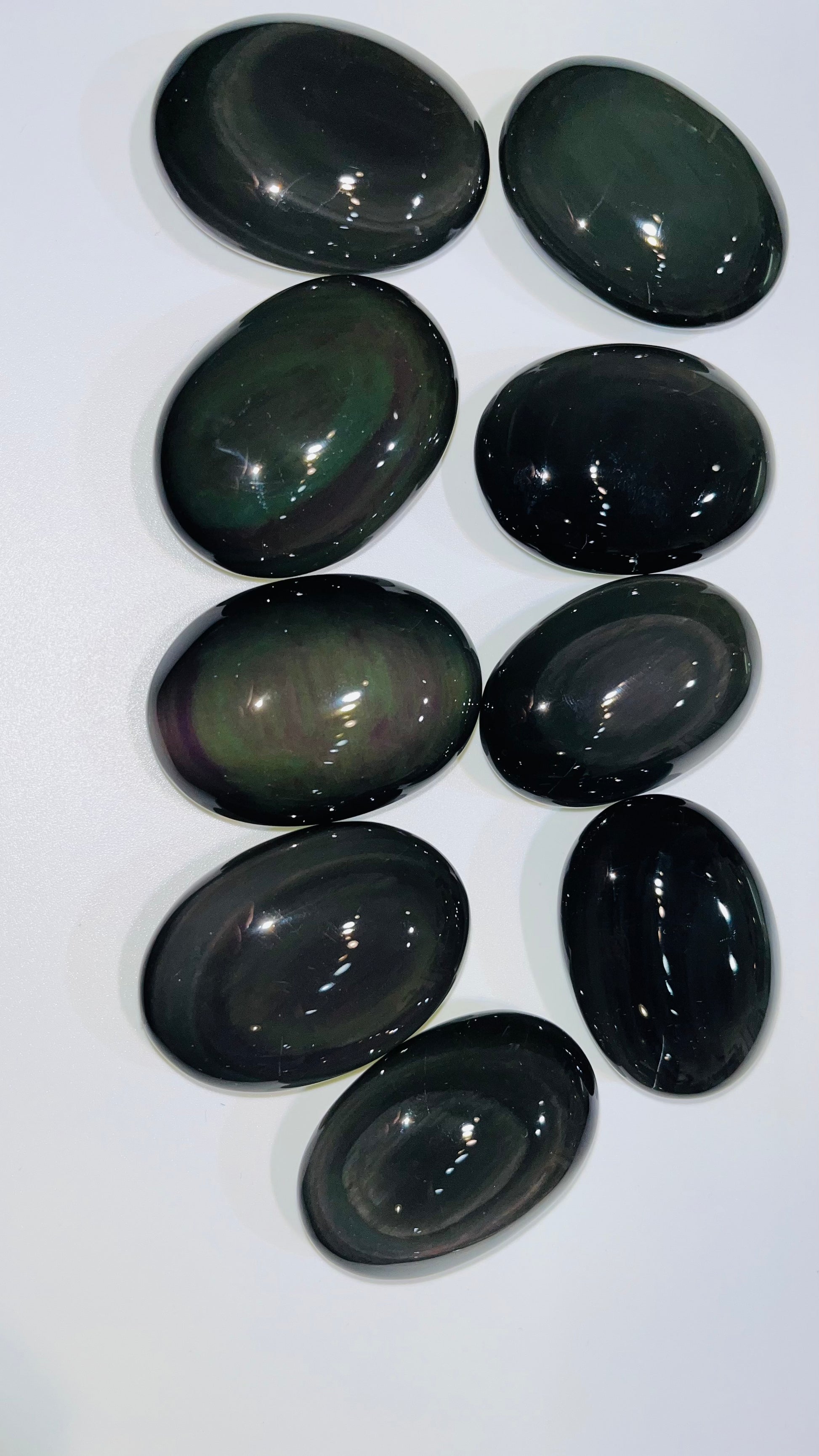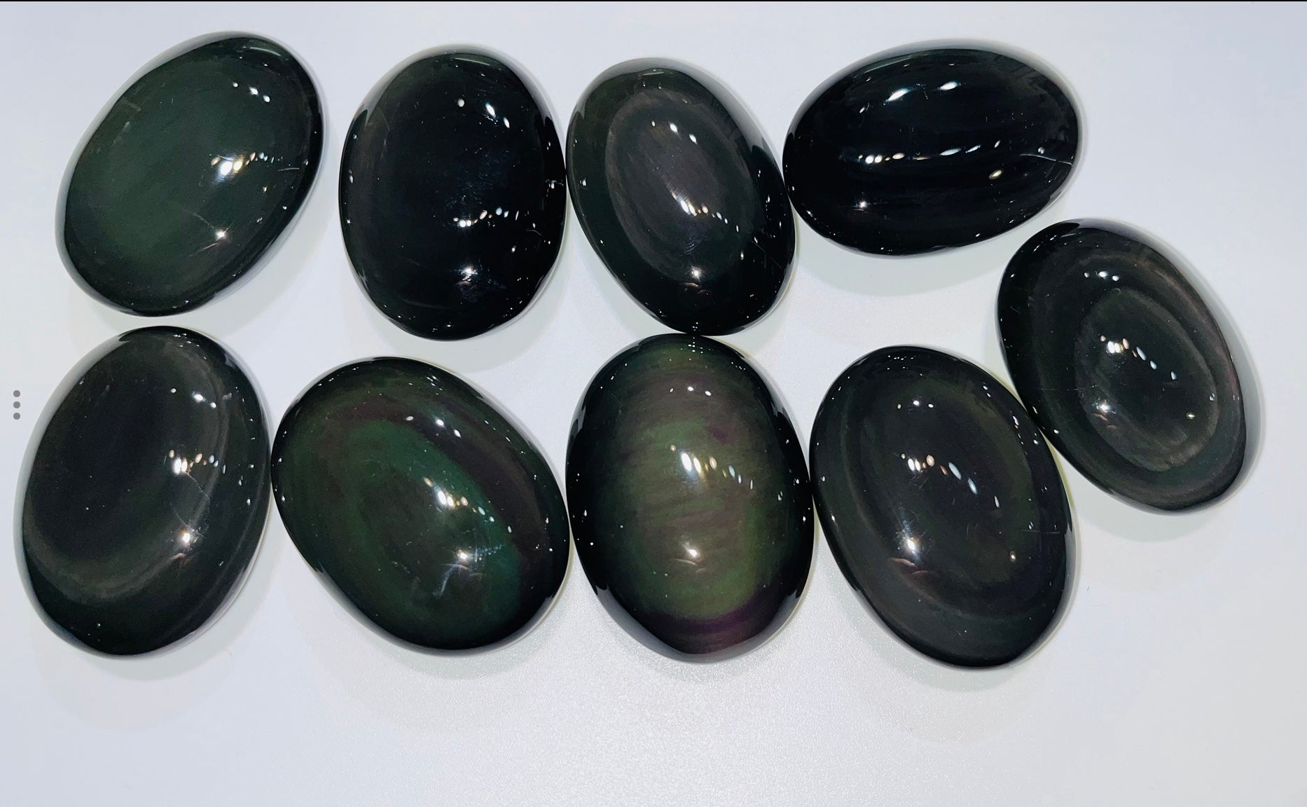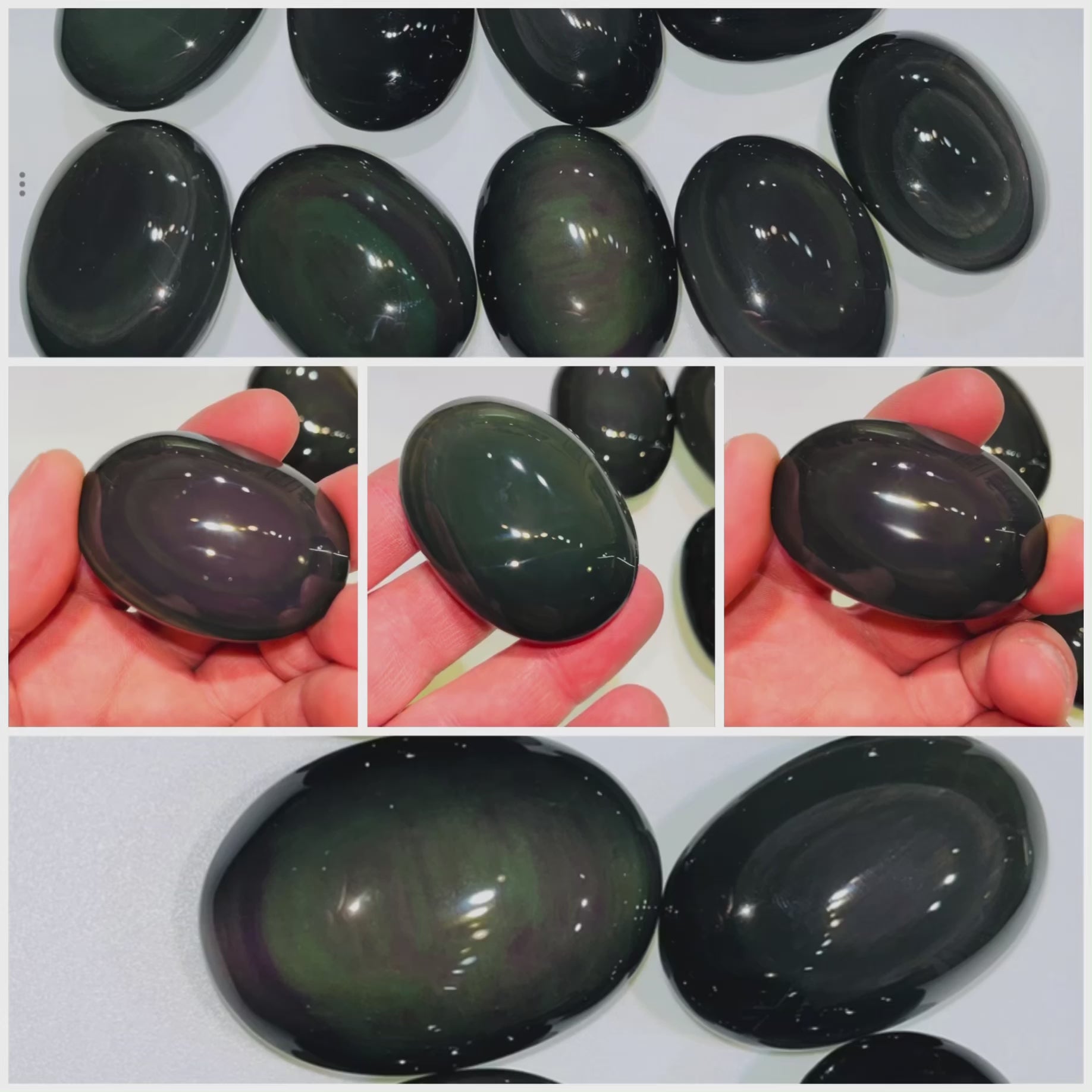 Introducing cut and hand polished Mexican Rainbow Obsidian: a mesmerizing gemstone from the volcanic lands of Mexico, boasting a stunning play of colors ranging from deep blacks to iridescent deep blues, greens, and purples. Believed to possess powerful metaphysical properties, it's a symbol of protection, grounding, and emotional healing. Embrace its beauty and metaphysical significance by incorporating it into your jewelry collection or home decor, and let its enchanting hues illuminate your journey.