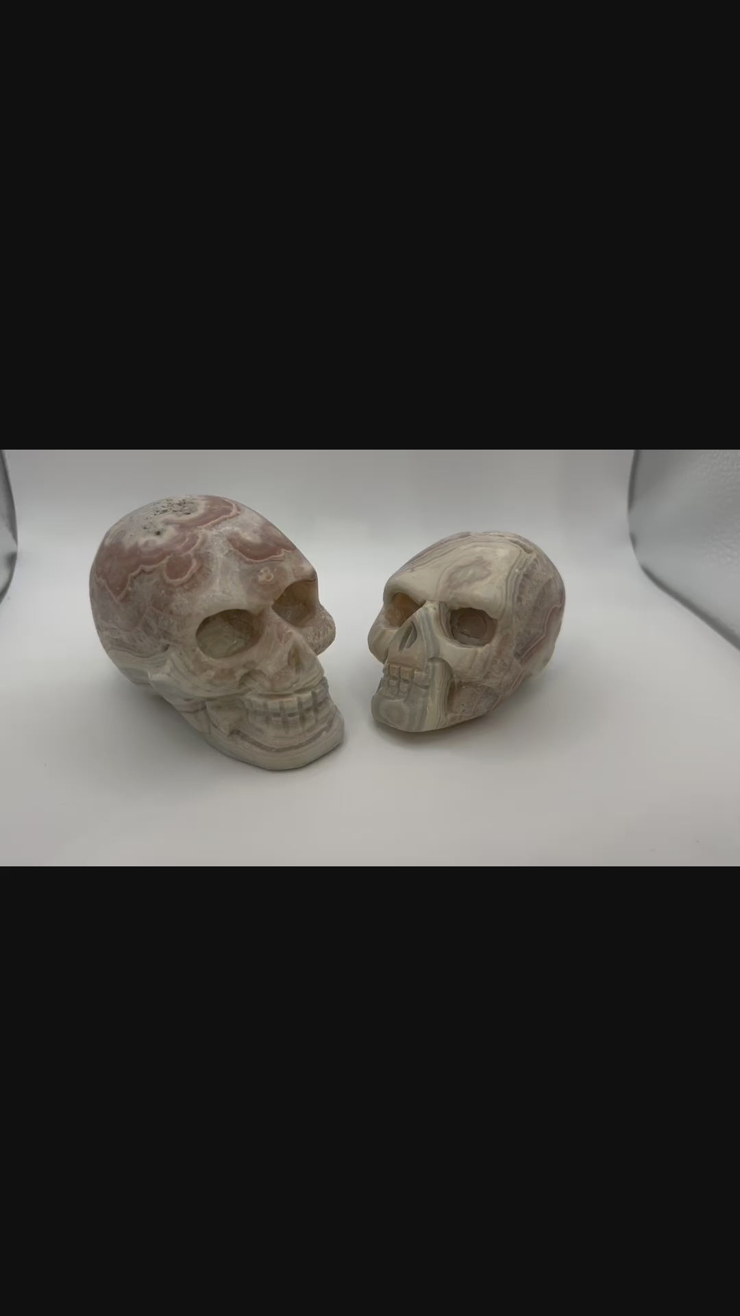 Introducing our exquisite Rhodo Chrosite Skull Head Carving: A harmonious fusion of elegance and intrigue, this remarkable piece showcases the enchanting beauty of Rhodo Chrosite stone. Crafted with precision and care, each intricately sculpted detail reveals the stone's rich pink hues and captivating patterns, reminiscent of a vibrant sunset captured in stone. Admire the natural beauty and unique character of each carving, as the mesmerizing swirls and crystalline formations evoke a sense of wonder and fascination. Embrace the allure of this extraordinary piece, where the timeless charm of Rhodo Chrosite is transformed into a captivating work of art, making it a striking addition to any collection or display.