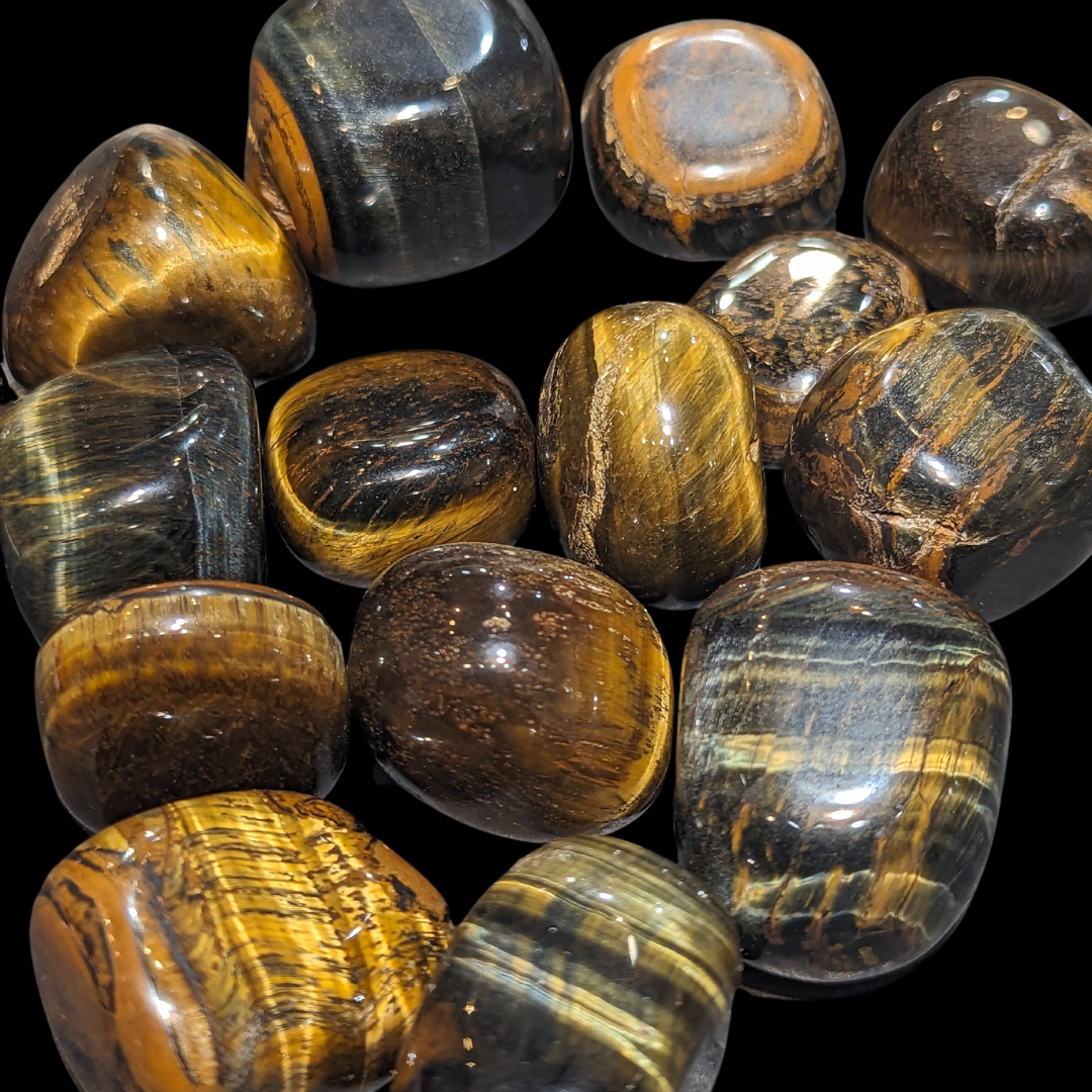 Physical: very large tumbles about as big around as quarter Tiger’s Eye was discovered by minerologists in western South Africa during the early 1800s. Since then, it’s maintained high levels of popularity across the world. It is often collected in South Africa and Western Australia, but can also be found in various other places, like India, the US, Brazil, Canada, China, Korea and Spain. Being both extremely lustrous and a 6.5-7 on the Mohs Hardness Scale, it is often used as an attractive motif, being used for jewellery and ornamentation.